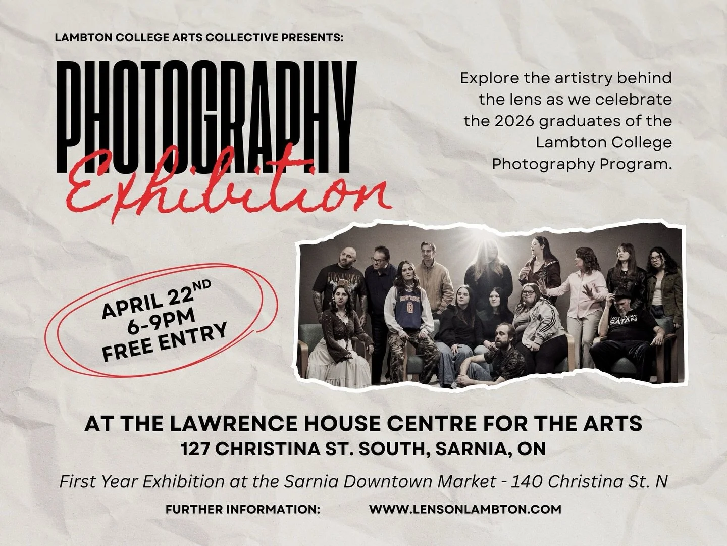 Lens on Lambton is committed to showcasing the work of current and past students of Lambton College’s Photography Program. In addition to promoting our talented photographers, Lens on Lambton will serve as a historical archive of the students, their work and the program.